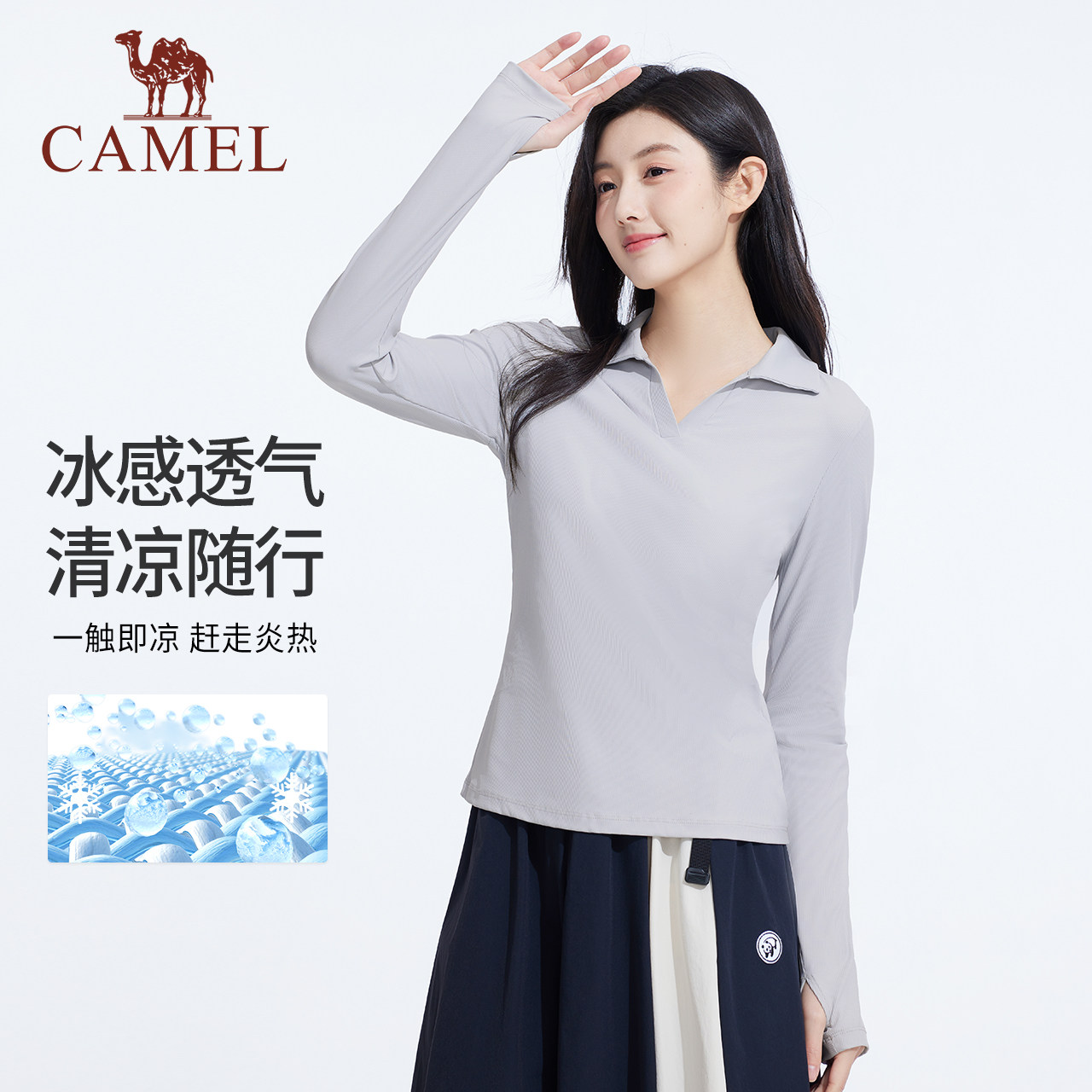 v领上衣外穿内搭打底衫 T恤女2025春夏显瘦凉感防晒衫 长袖 骆驼女装