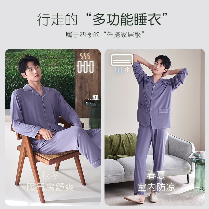 套装 轩靓2025新款 裸感家居服大码 冰丝凉感长袖 莫代尔睡衣男春秋季