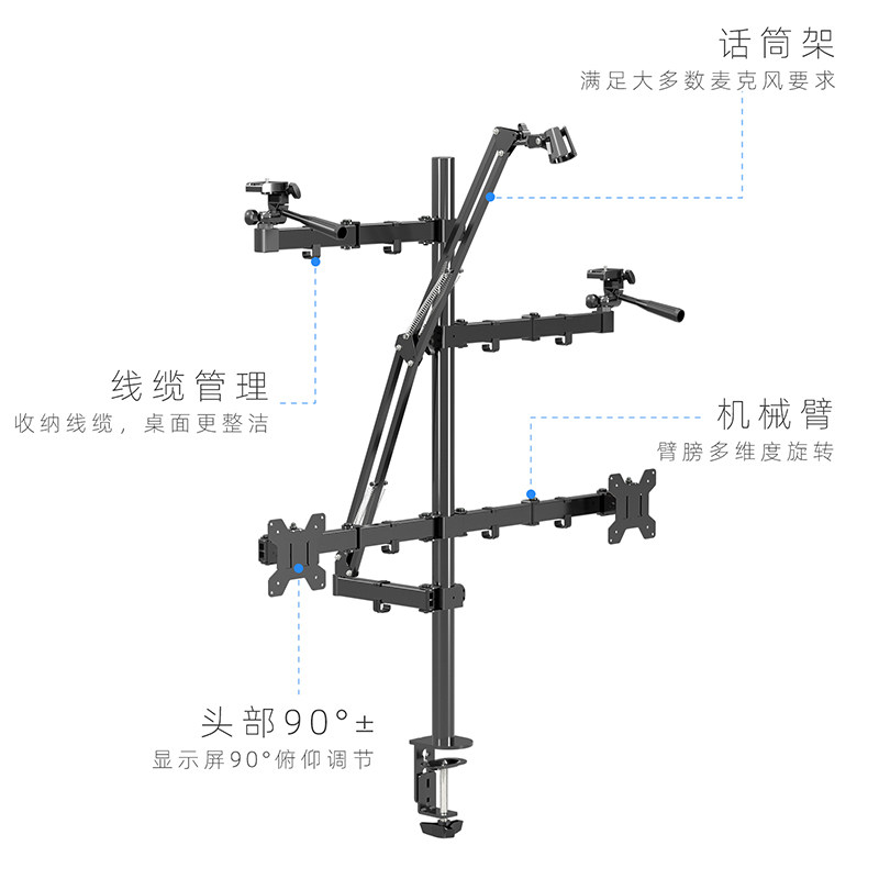 一体式 多功能直播云台组合支架补光灯教学拍摄旋转增高手机平板架