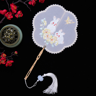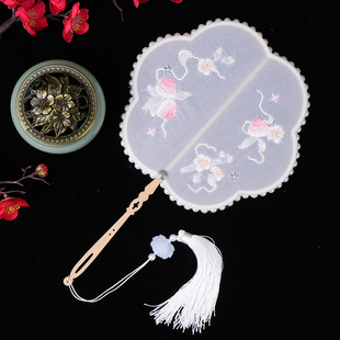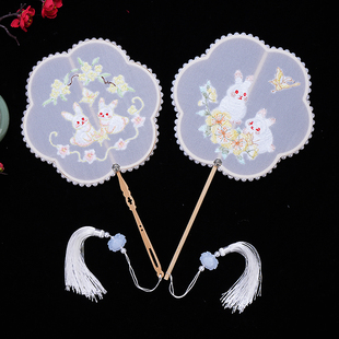团扇古风扇子儿童夏天半透明古装 汉服旗袍刺绣长柄流苏舞蹈扇宫扇