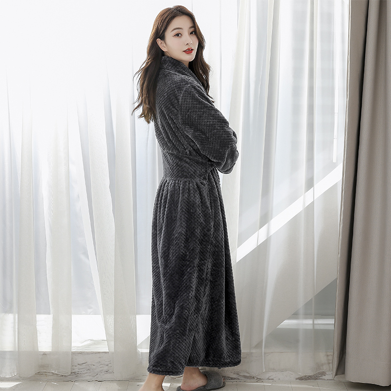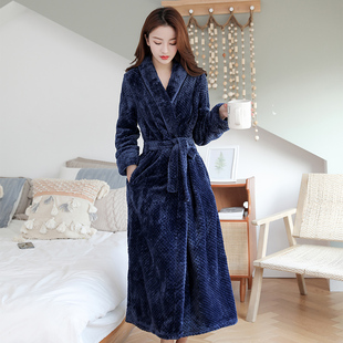浴袍男双面加绒加厚防寒保暖睡衣女 一体式 长款 珊瑚绒睡袍女冬修身
