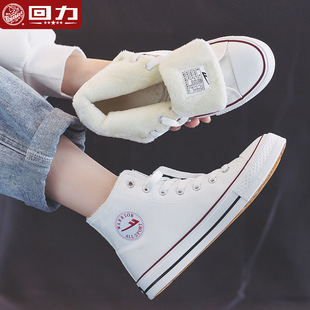 2024新款 加绒二棉鞋 女鞋 白色春秋款 回力高帮帆布鞋 黑色男鞋 秋冬季