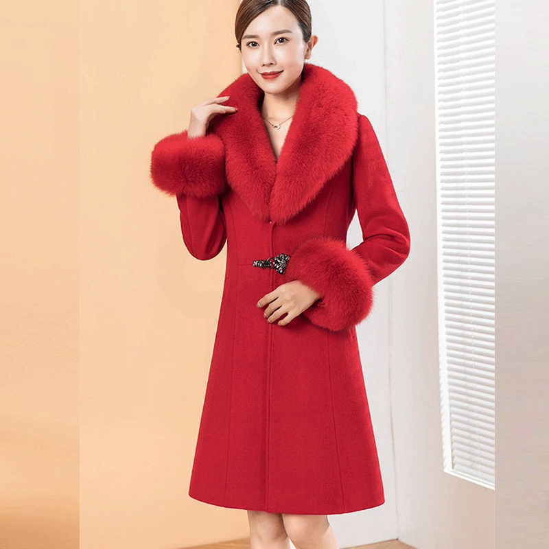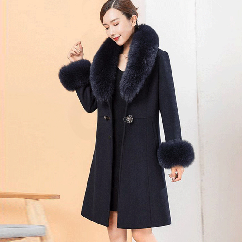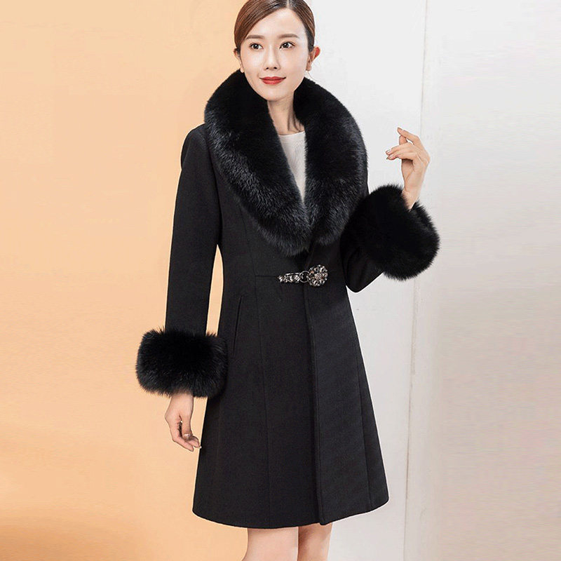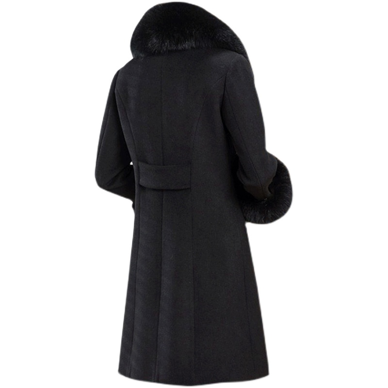 可拆卸真狐狸毛领羊绒大衣女中长款 羊毛呢外套 小个子妈妈高端大码