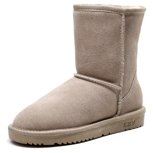 2025雪地靴女中筒真皮保暖防滑皮毛一体加绒加厚面包鞋 子百搭 棉鞋