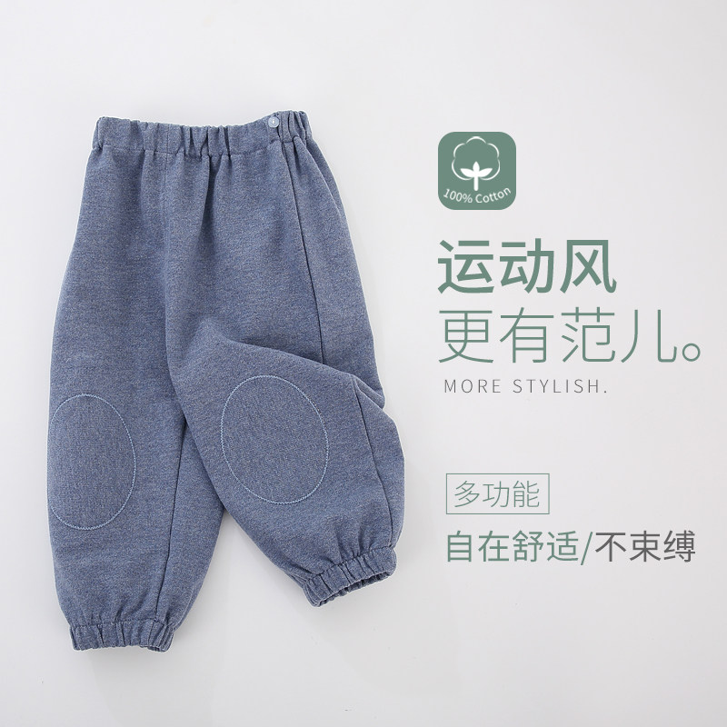 可套手工棉裤 防脏纯棉卫裤 裤 儿童宽松阔腿长裤 子秋冬季 宝宝罩裤