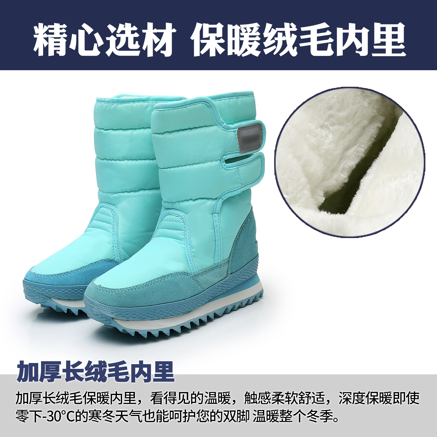 女加绒棉靴 加厚保暖中筒雪地靴女防水防滑时尚 冬季 清仓情侣款