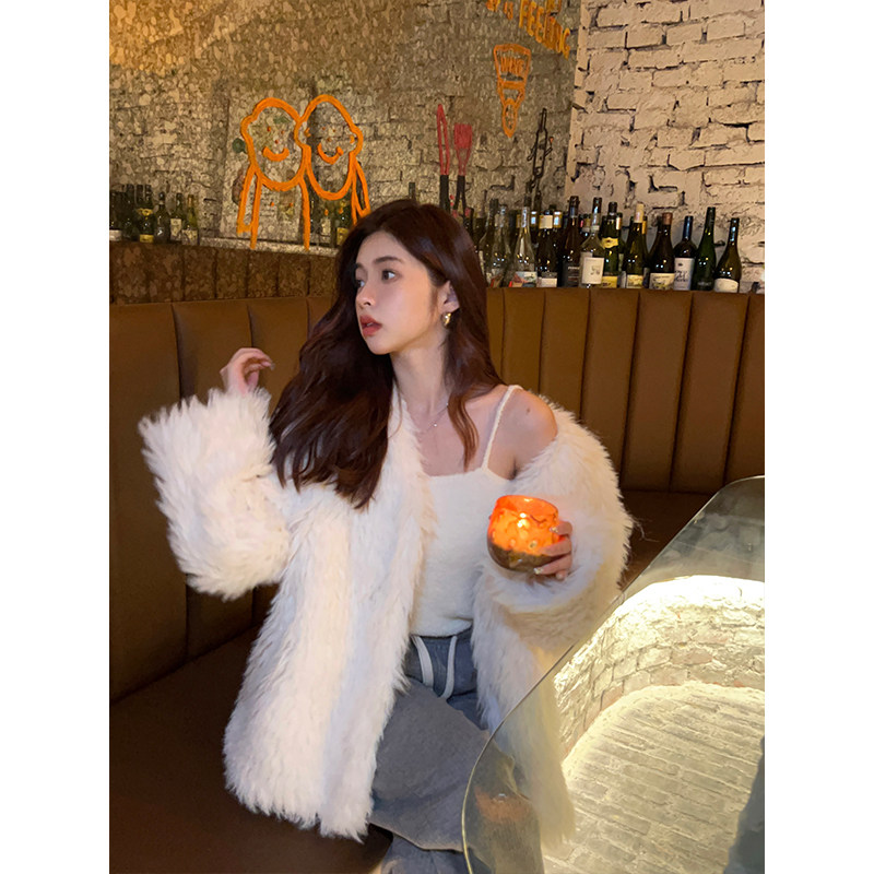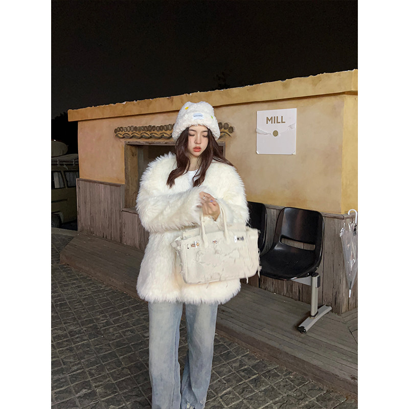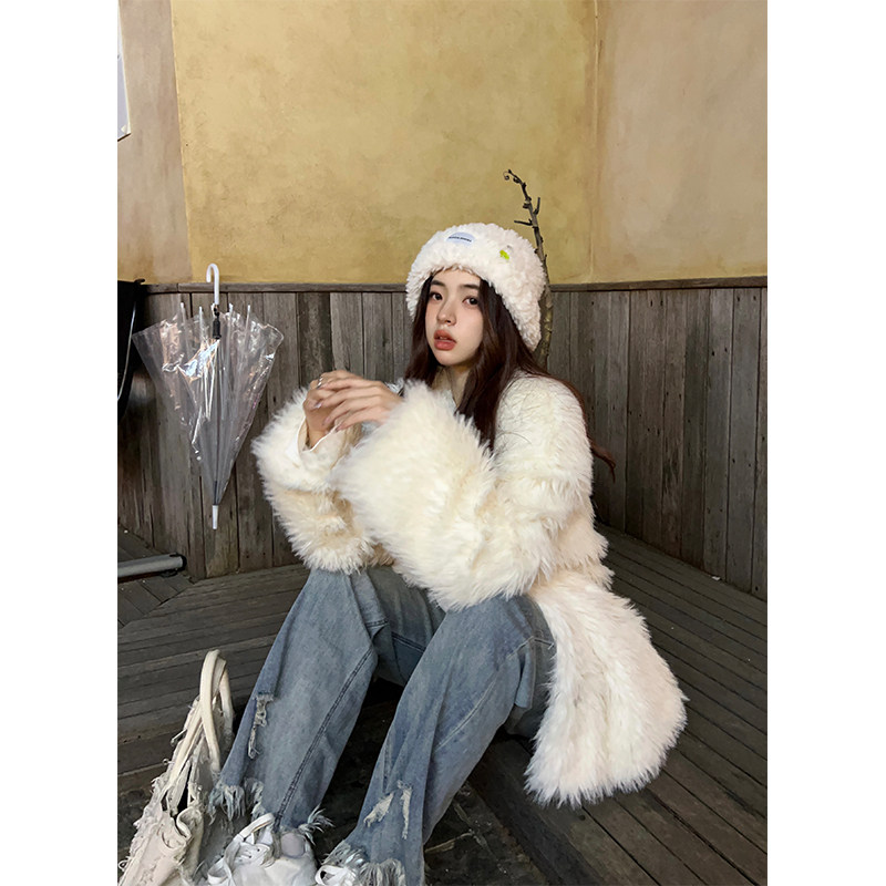 韩版 新款 宽松显瘦加厚保暖慵懒气质毛毛外套女 环保皮草冬季 Adan
