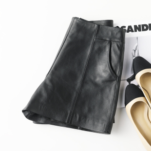 A字高腰显瘦阔腿裤 女绵羊皮短裤 外穿 海宁真皮皮裤 2024年秋冬新款