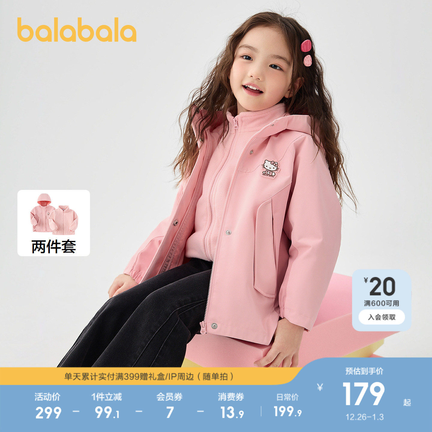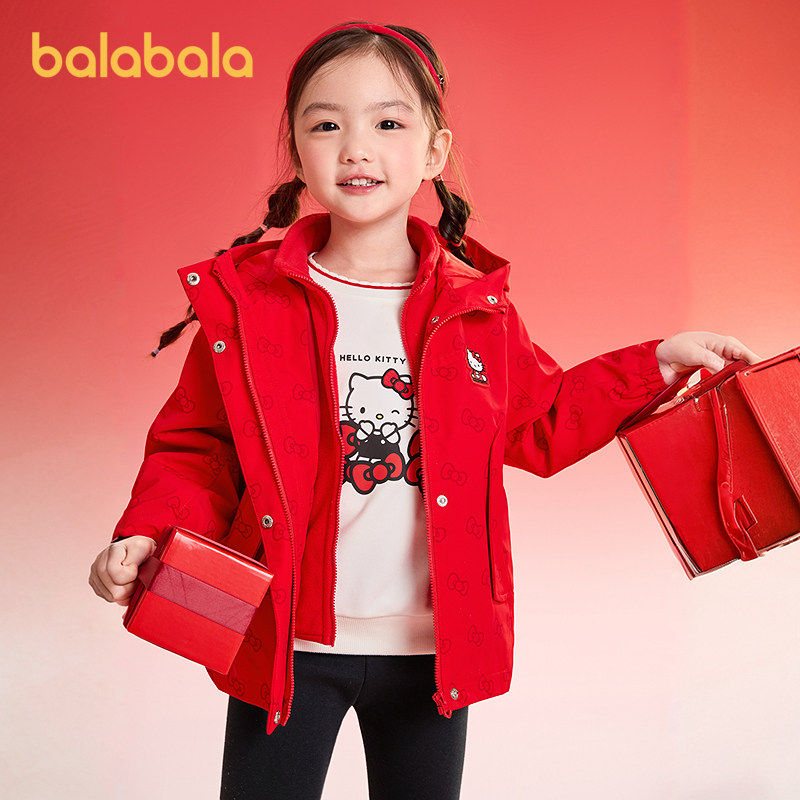 巴拉巴拉女童外套春秋两件套甜美防风防泼水透湿 HelloKittyIP