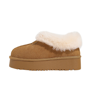 油叽叽 加绒加厚保暖棉靴厚底增高短筒靴子 真皮羊毛雪地靴女冬季
