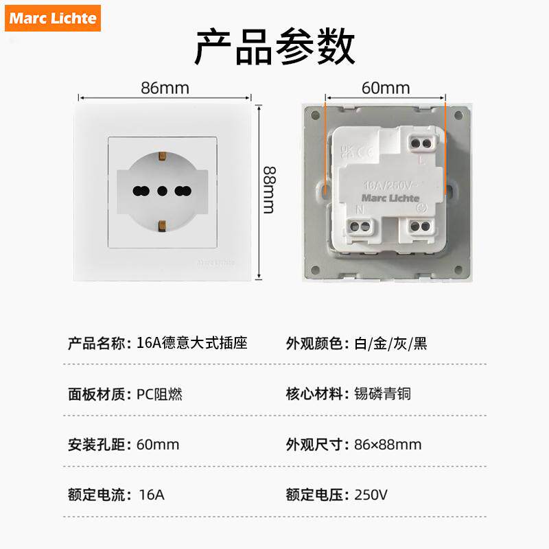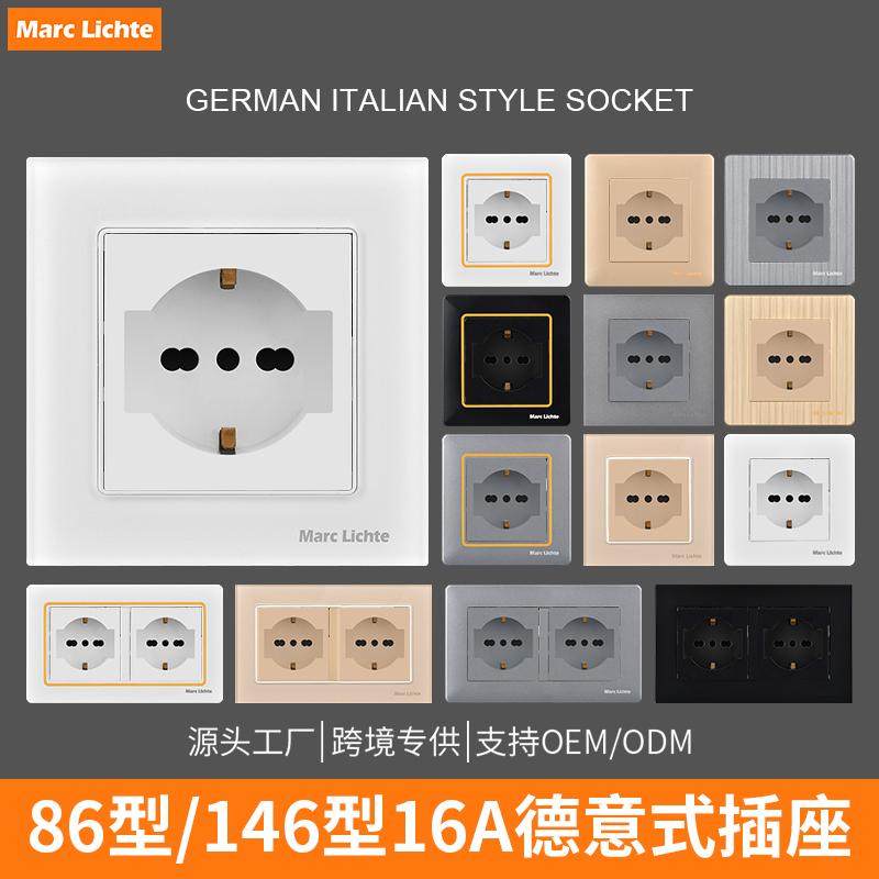 面板 插座墙壁146型双位欧标欧式 暗装 16A德国意大利德标86型德意式
