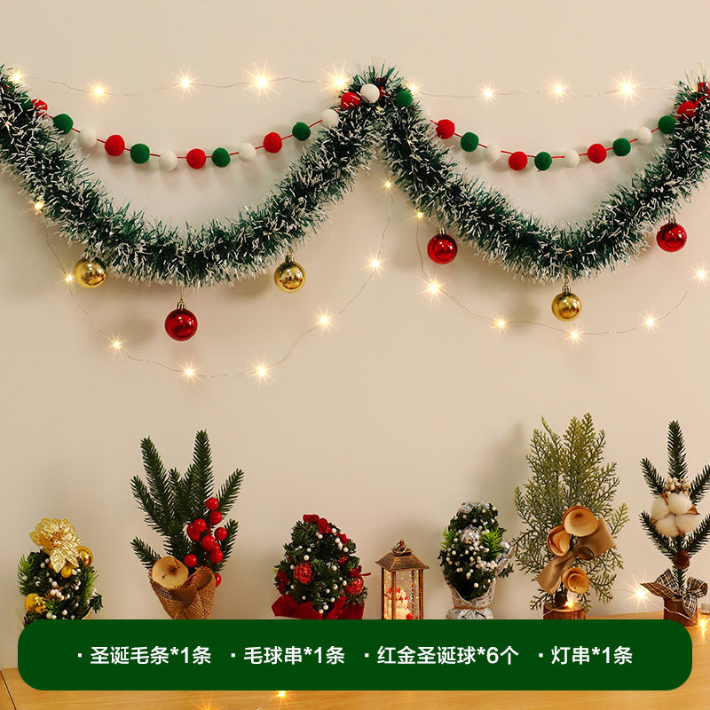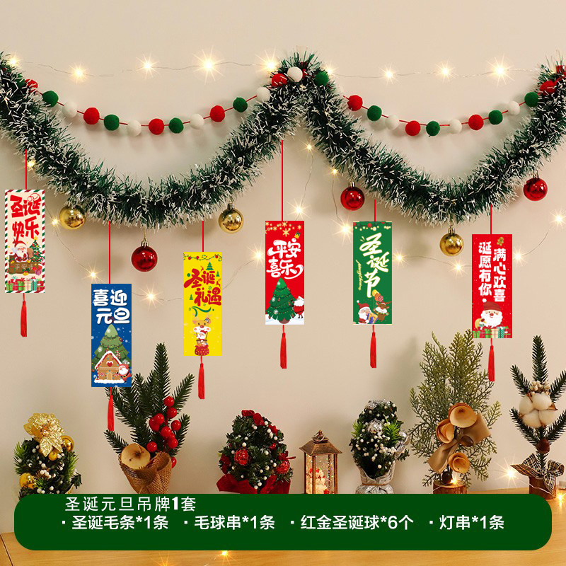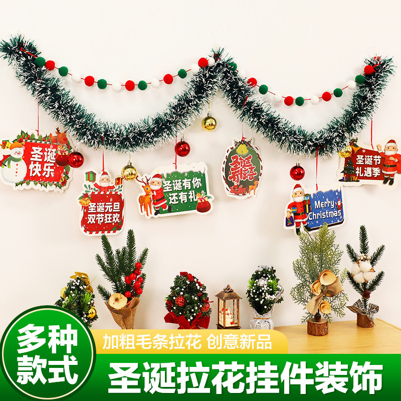 新款 饰彩条拉花 圣诞节卡通拉旗带灯毛条店铺橱窗氛围布置圣诞树装