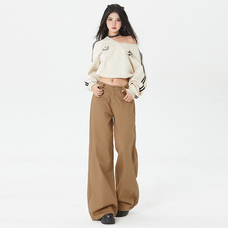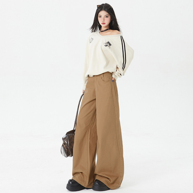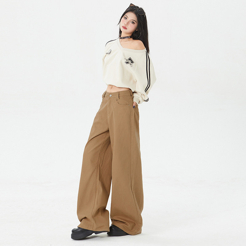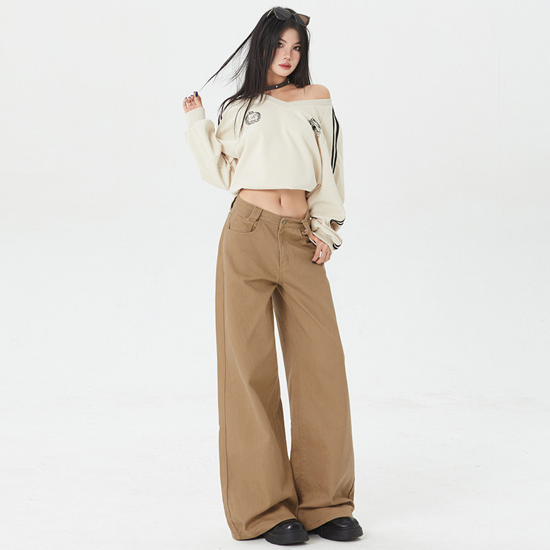 牛仔裤 女2025春秋棕纯色拖地裤 小众高级感拿铁宽松阔腿裤 BRN美式