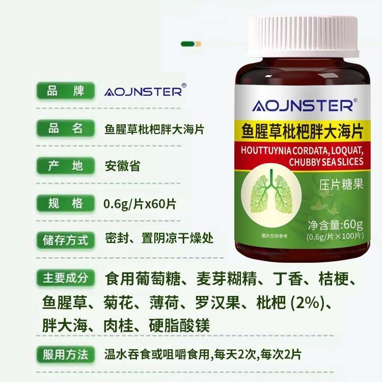 澳嘉斯OJNSTER鱼腥草枇杷胖大海片100片 鱼腥草枇杷肉桂 正品