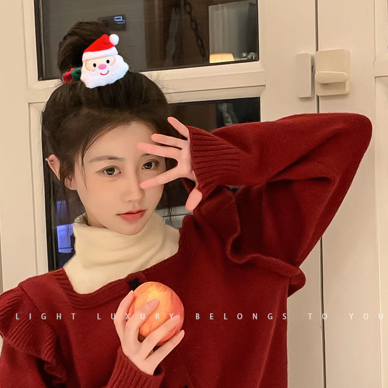 红色小香风小马发夹边夹侧边发卡女高级感气质新年圣诞头饰刘海夹
