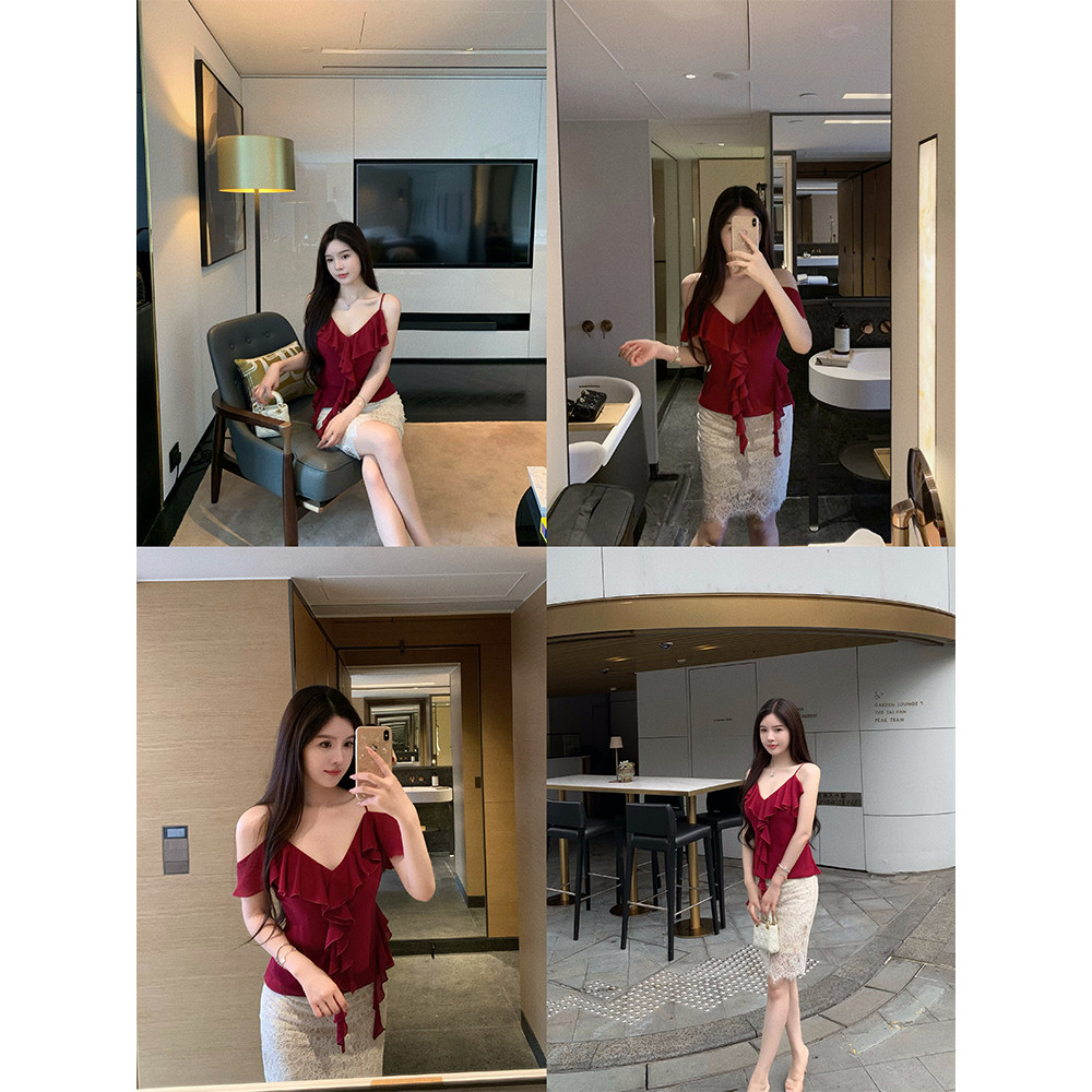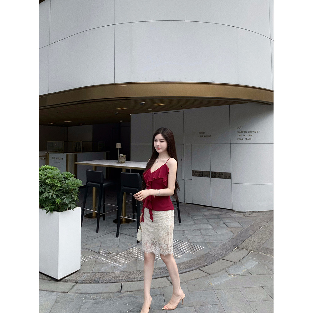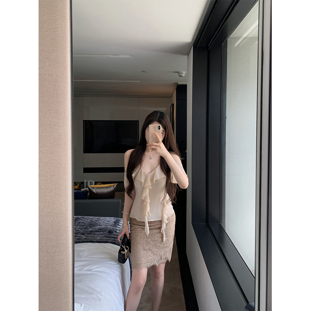 独特绝美荷叶边上衣纯欲吊带背心女夏 乔其雪纺 THE SWAN司凰轻奢
