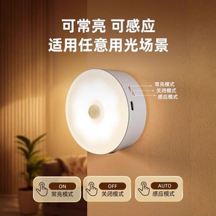自动人体感应灯起夜卧室婴儿喂奶护眼壁侧发光过道充电小夜灯地脚