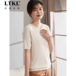 中年女洋气减龄T恤中老年夏季 针织小衫 宽松洋气上衣 短袖 妈妈夏装