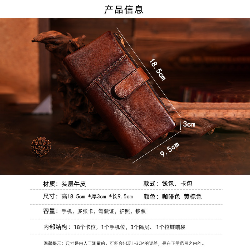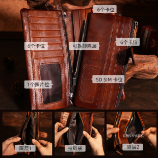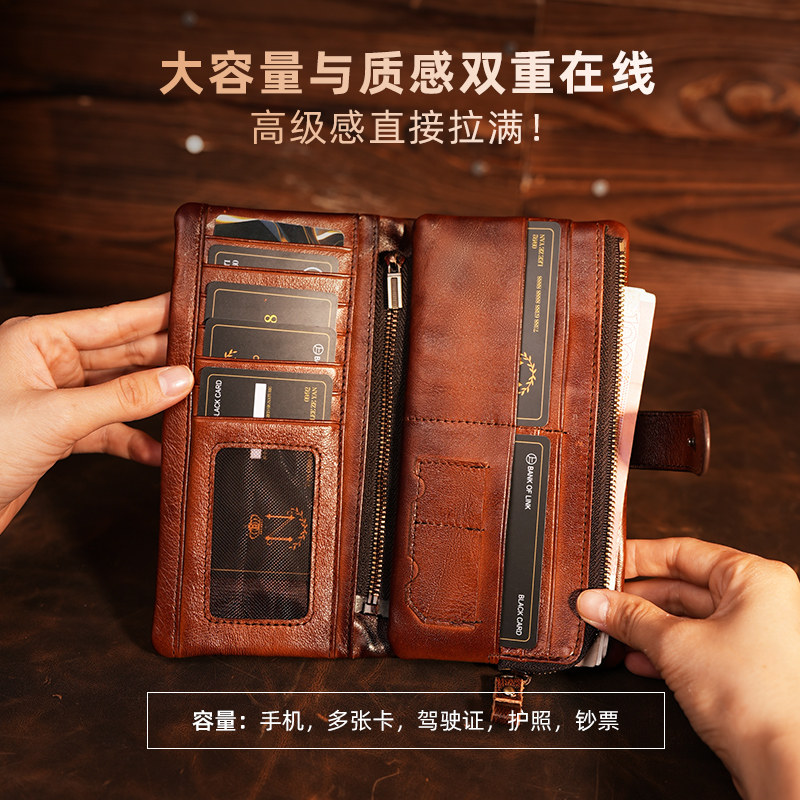 卡包一体大容量男友礼物 长款 鹿师傅头层牛皮真皮男士 钱包2026新款