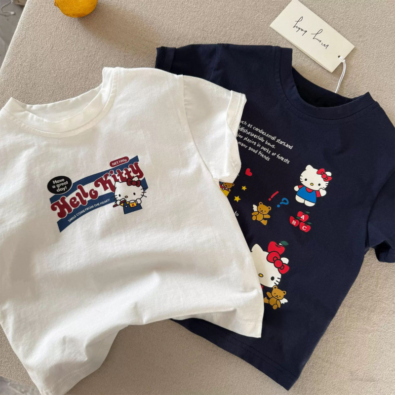 新款 夏季 百搭休闲卡通凯蒂猫可爱女童上衣潮流t T恤衫 纯棉儿童短袖