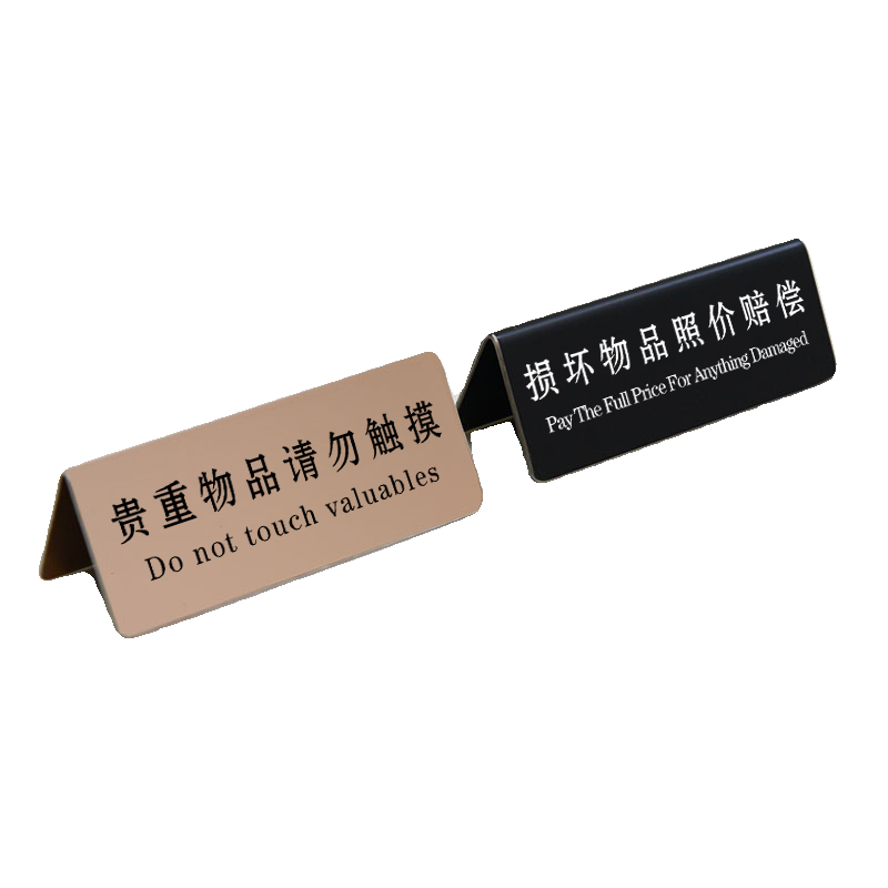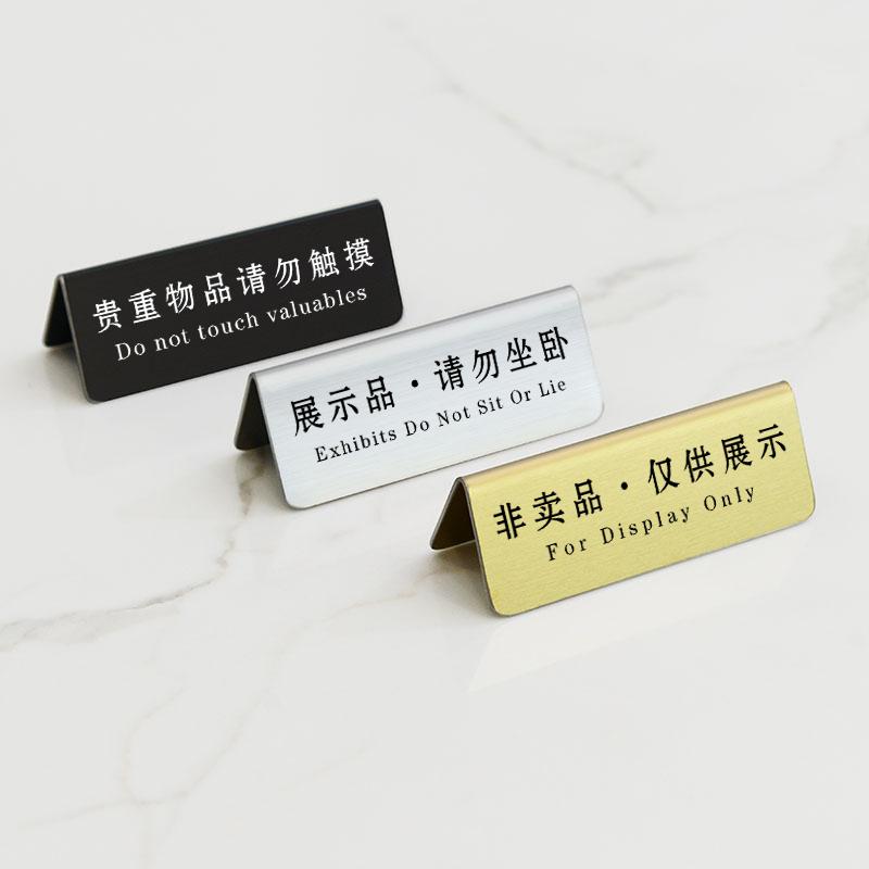 不锈钢提示牌贵重物品请勿触摸展示品请勿坐卧损坏物品照价赔偿