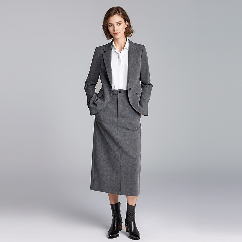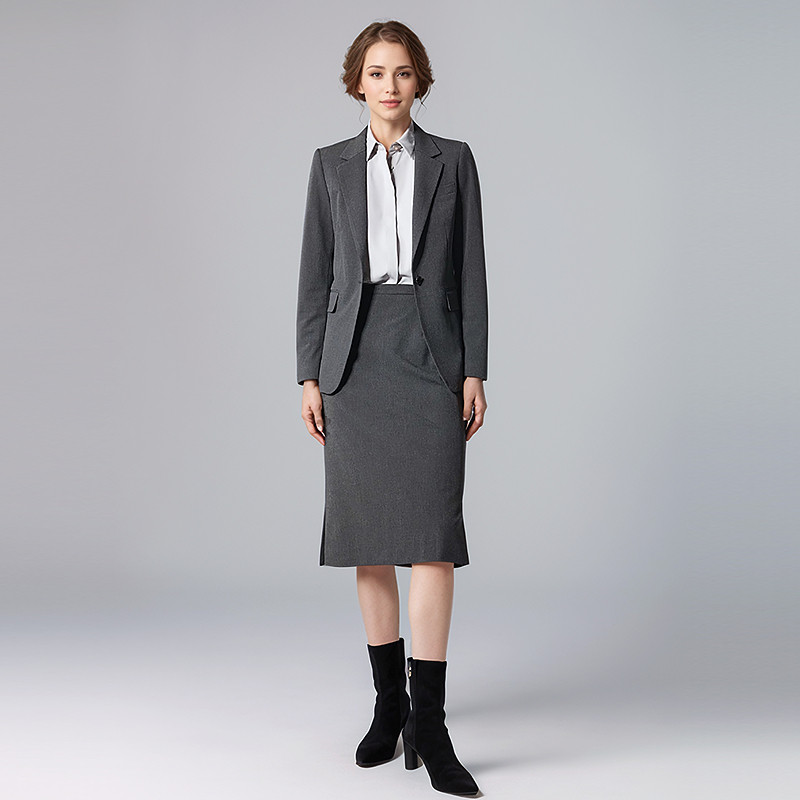 小个子职业面试正装 璐丝百丽深灰色西装 新款 女春秋季 西服套裙 套装