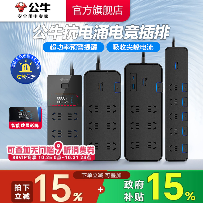 公牛插座旗舰店插排插线板拖线板电源插座家用接线板多排插排宿舍