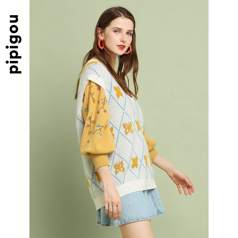 针织打底衫 品牌高级感羊毛衫 女半高领宽松毛衣秋冬加厚羊绒长袖