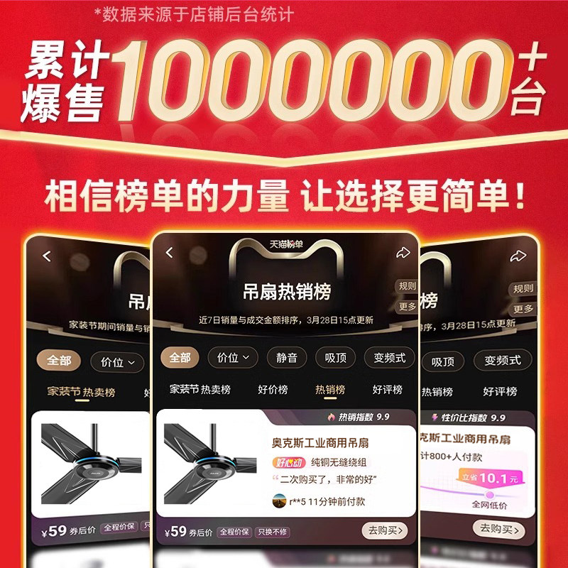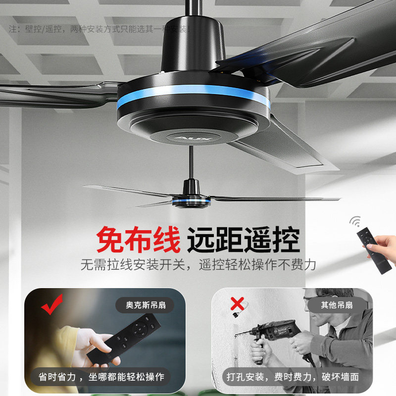 奥克斯吊扇家用客厅吊挂式 餐厅风扇工业商用电扇遥控电风扇黑色