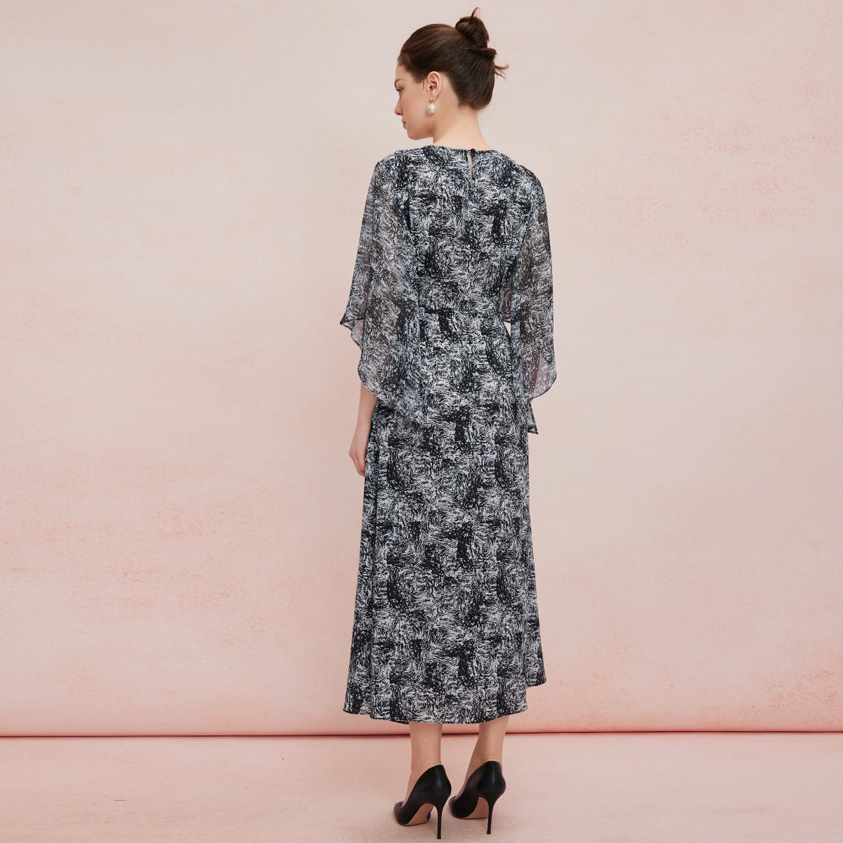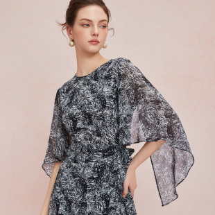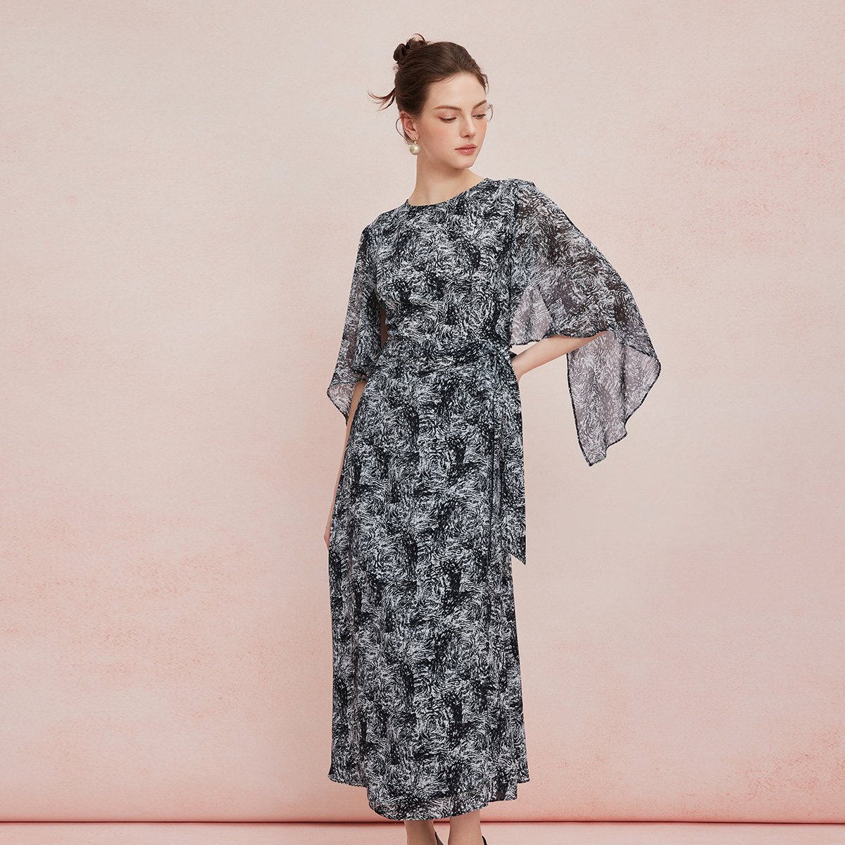 下摆裹裙法式 设计感抛袖 碎花显瘦高连衣裙 新款 斯尔丽2025夏季