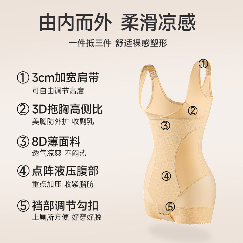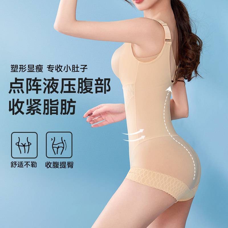 强压加强版 产后收腹束腰提臀美体带胸垫束身衣 连体塑身衣女后脱式