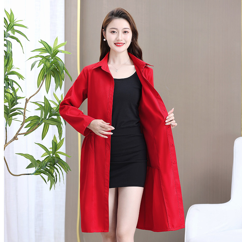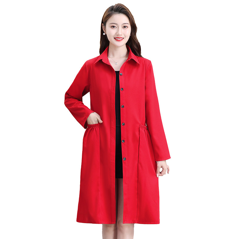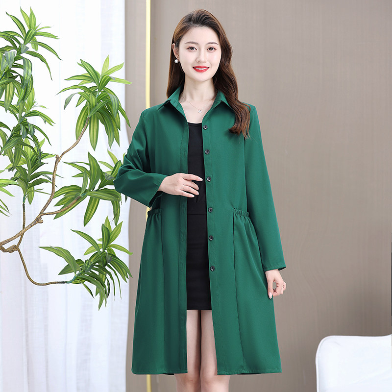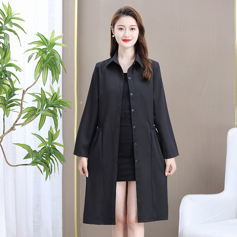 风衣外套时尚 显瘦衬衣春装 妈妈装 大码 中老年女纯色翻领衬衫 中长款