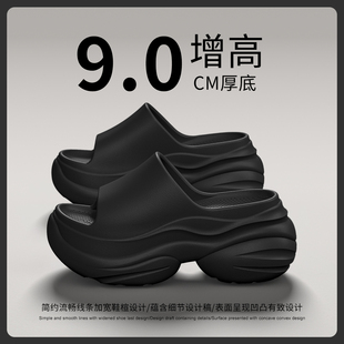 奶蓝色厚底增高凉拖旅行EVA软底沙滩鞋 女夏季 外穿一字拖鞋 细细条