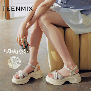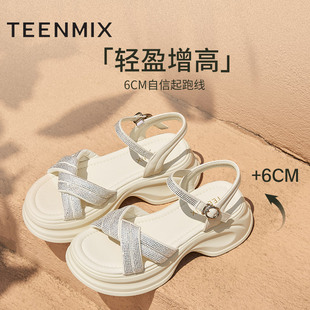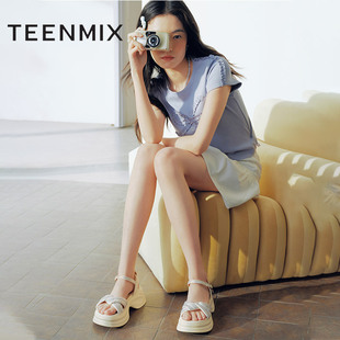 季 女士皮革厚底增高扣带凉鞋 末特惠 S官方正品 休闲单鞋 TOD