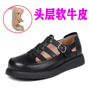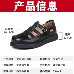 软底猪笼鞋 镂空透气洞洞女鞋 女外穿平底休闲大码 真皮包头罗马凉鞋