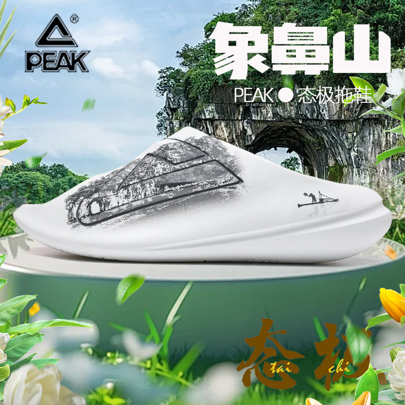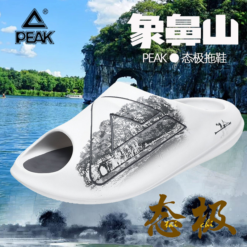匹克态极男小胖拖运动拖鞋 新配色山水软弹外穿厚底女沙滩增高白黑