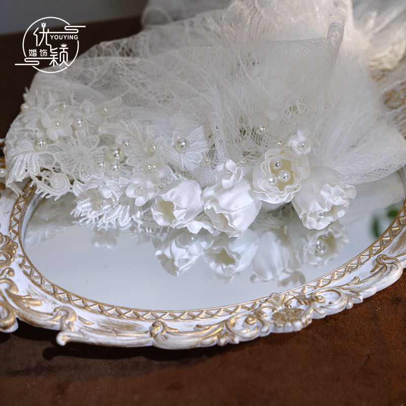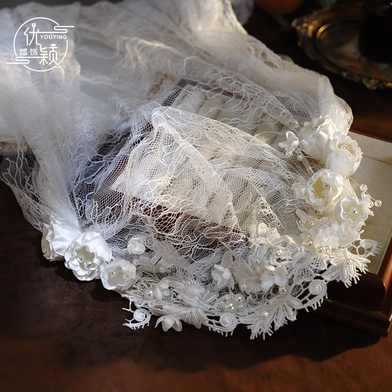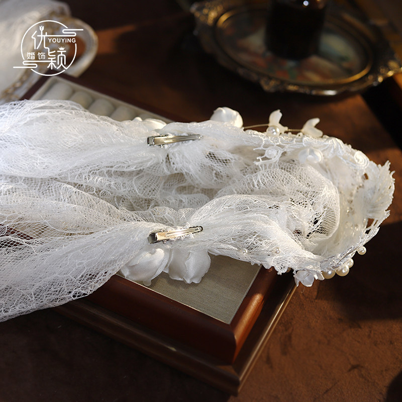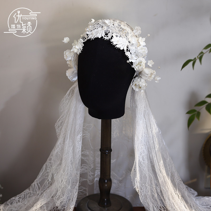 优颖蔷薇花复古蕾丝民国风头纱帽法式 气质新娘结婚头饰旅拍发饰品