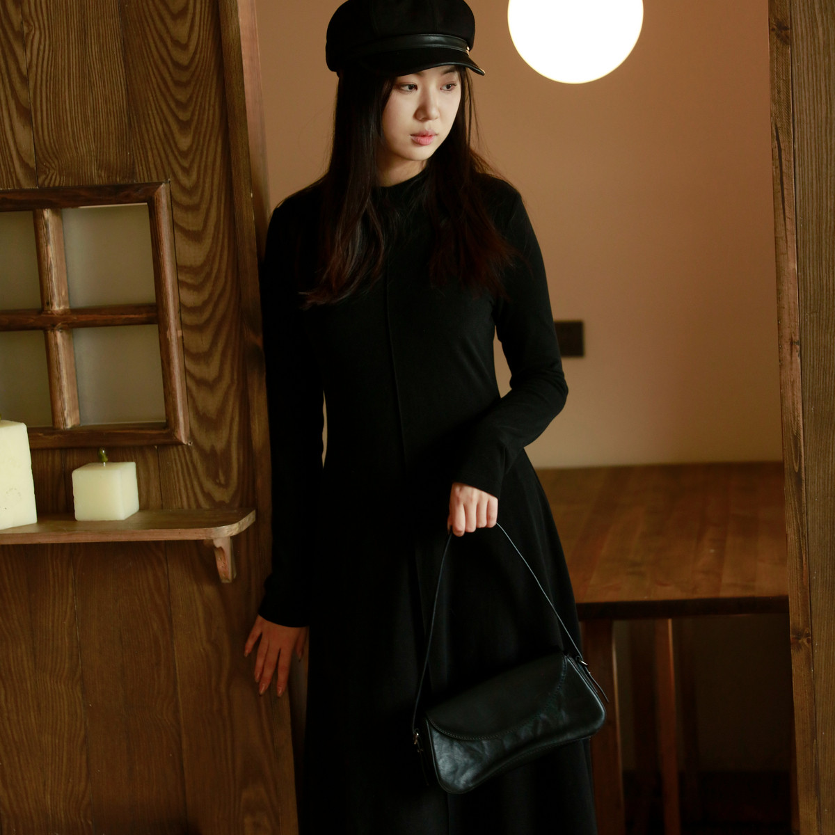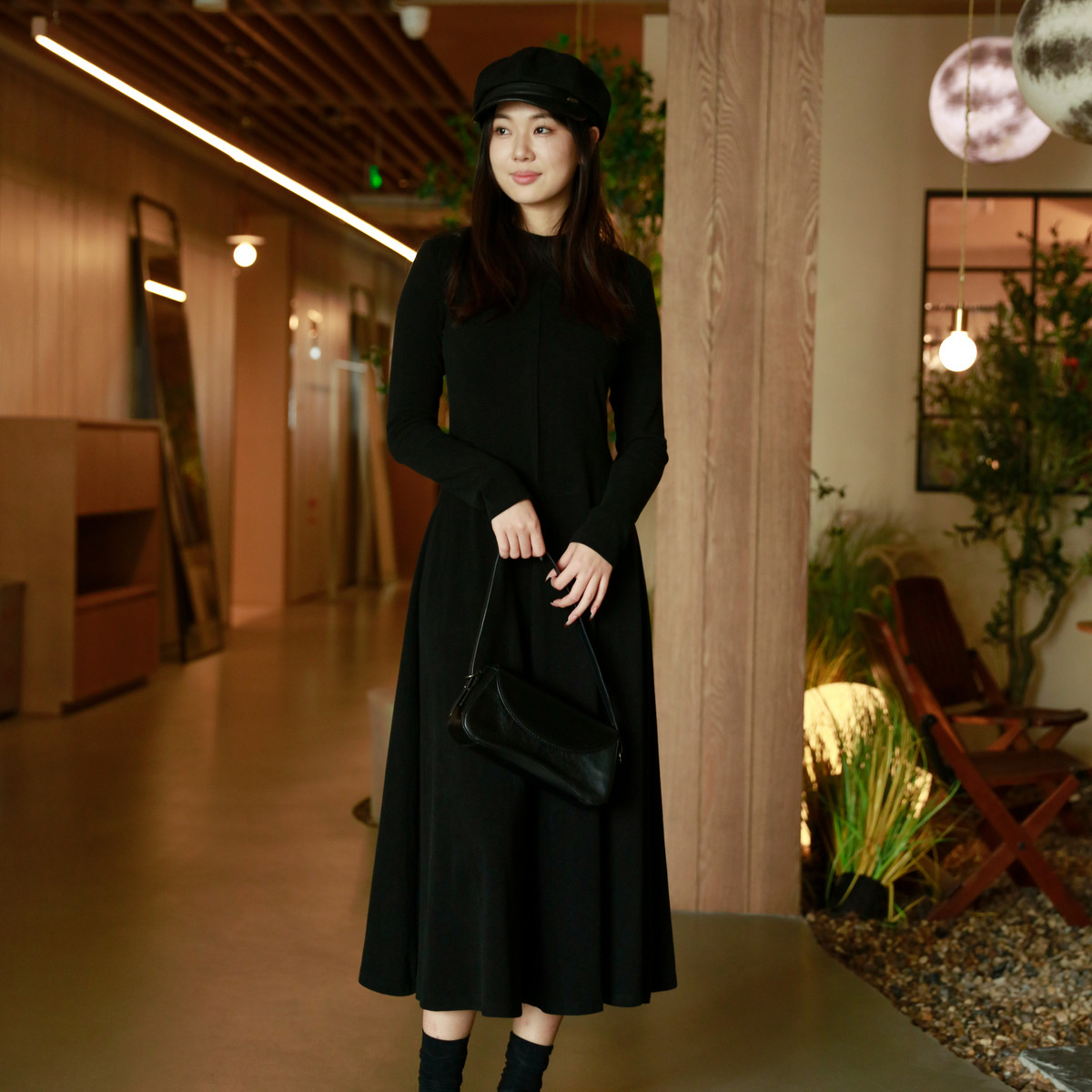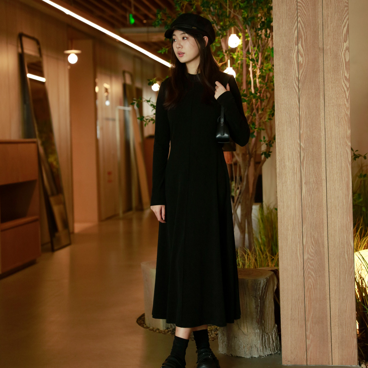 浪漫简约中高领大摆长裙AD8502009 法式 西町村屋连衣裙女冬季 新款