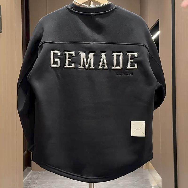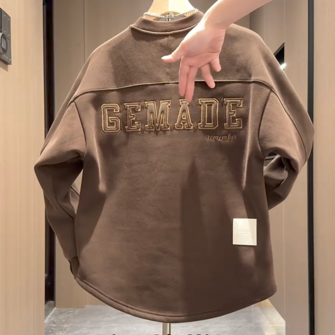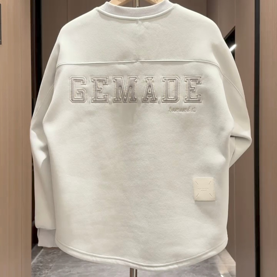冬季 上衣 重磅加绒刺绣拼接圆领燕尾卫衣男宽松百搭休闲情侣打底衫
