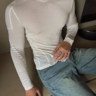 羊毛针织混纺天丝打底内搭T恤 weave性感天花板修身 现货