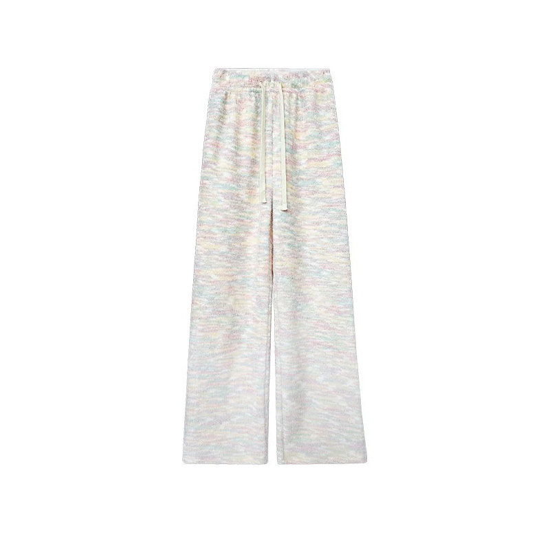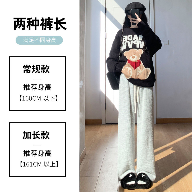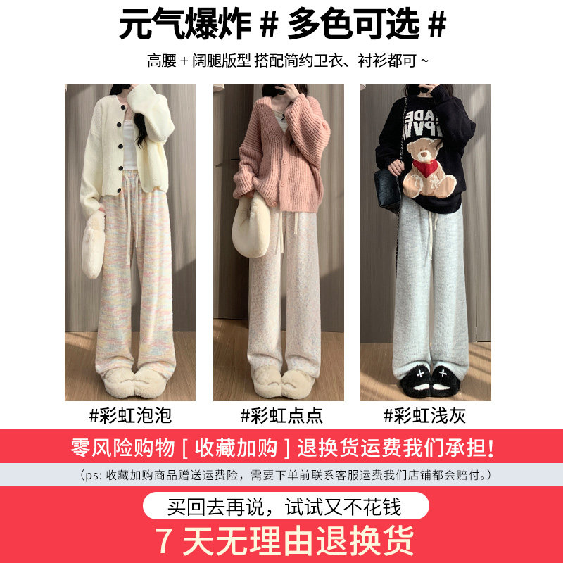 软糯春秋彩虹针织裤 高腰垂感加绒阔腿裤 女秋冬2025新款 灰色糯米裤