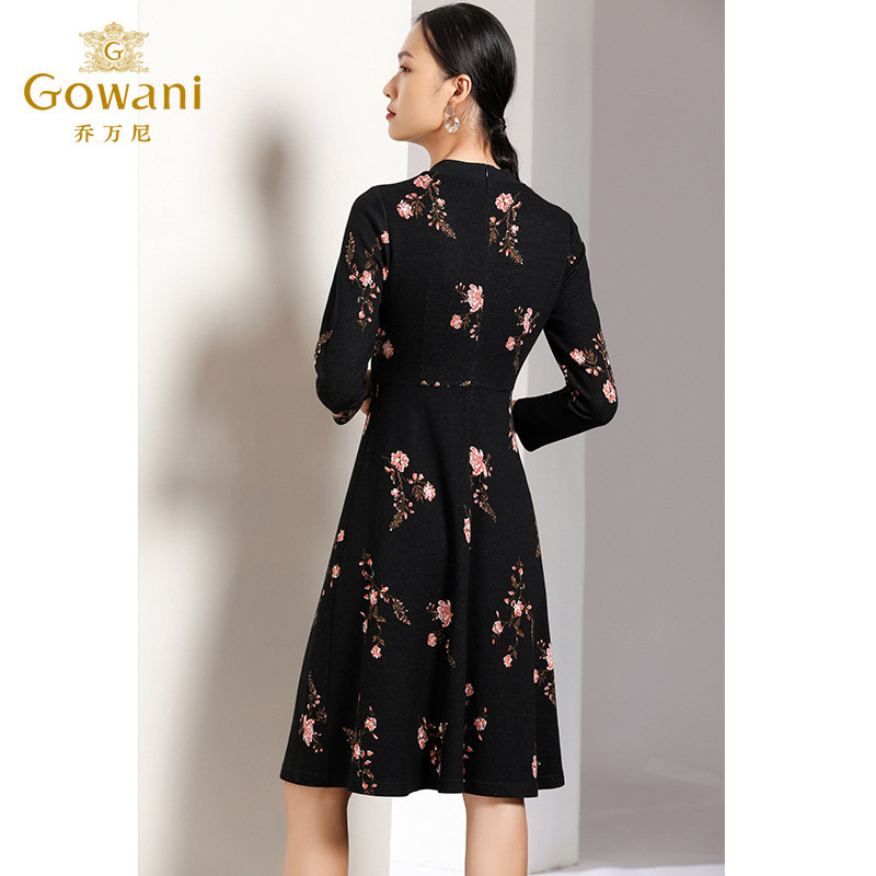 新款 乔万尼羊毛针织连衣裙商场秋装 女印花显瘦气 官方奥莱清仓
