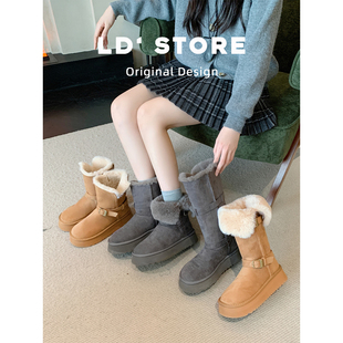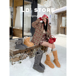 雪地靴毛毛鞋 骆驼x奈娃联名勃肯鞋 加绒保暖厚底时尚 新款 2025冬季