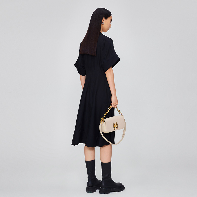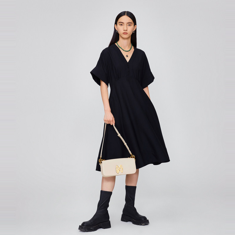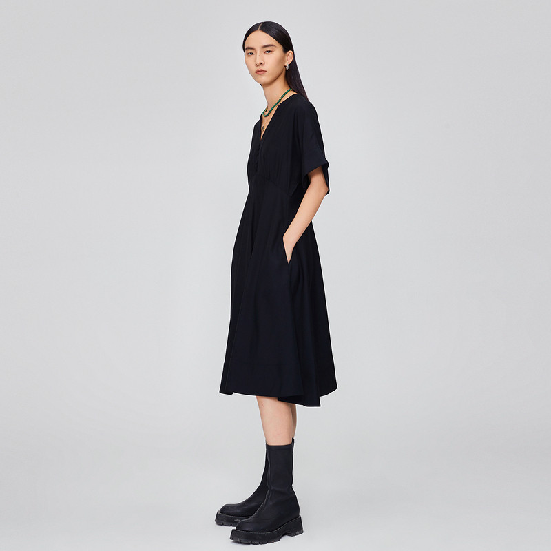 新能量黑裙 茶歇修身 玛丝菲尔时尚 气质蝙蝠袖 连衣裙女 法式