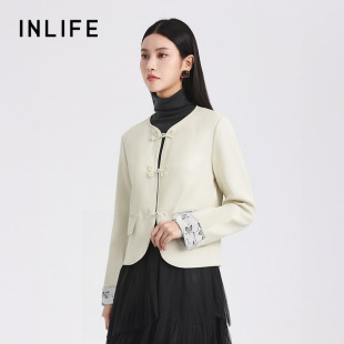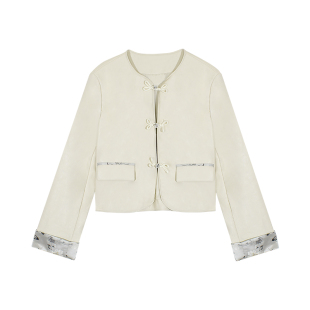 宽松休闲时髦高级气质PU外套 新款 伊纳芙中国风短款 白色皮衣女秋季