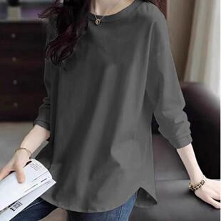 宽松显瘦洋气打底t恤 休闲上衣春装 外贸出口清仓100%纯棉女装 长袖