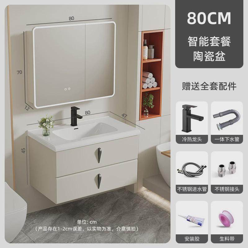 加厚不锈钢圆弧智能浴室镜柜挂墙式 收纳柜单独灯光除雾卫生间防水