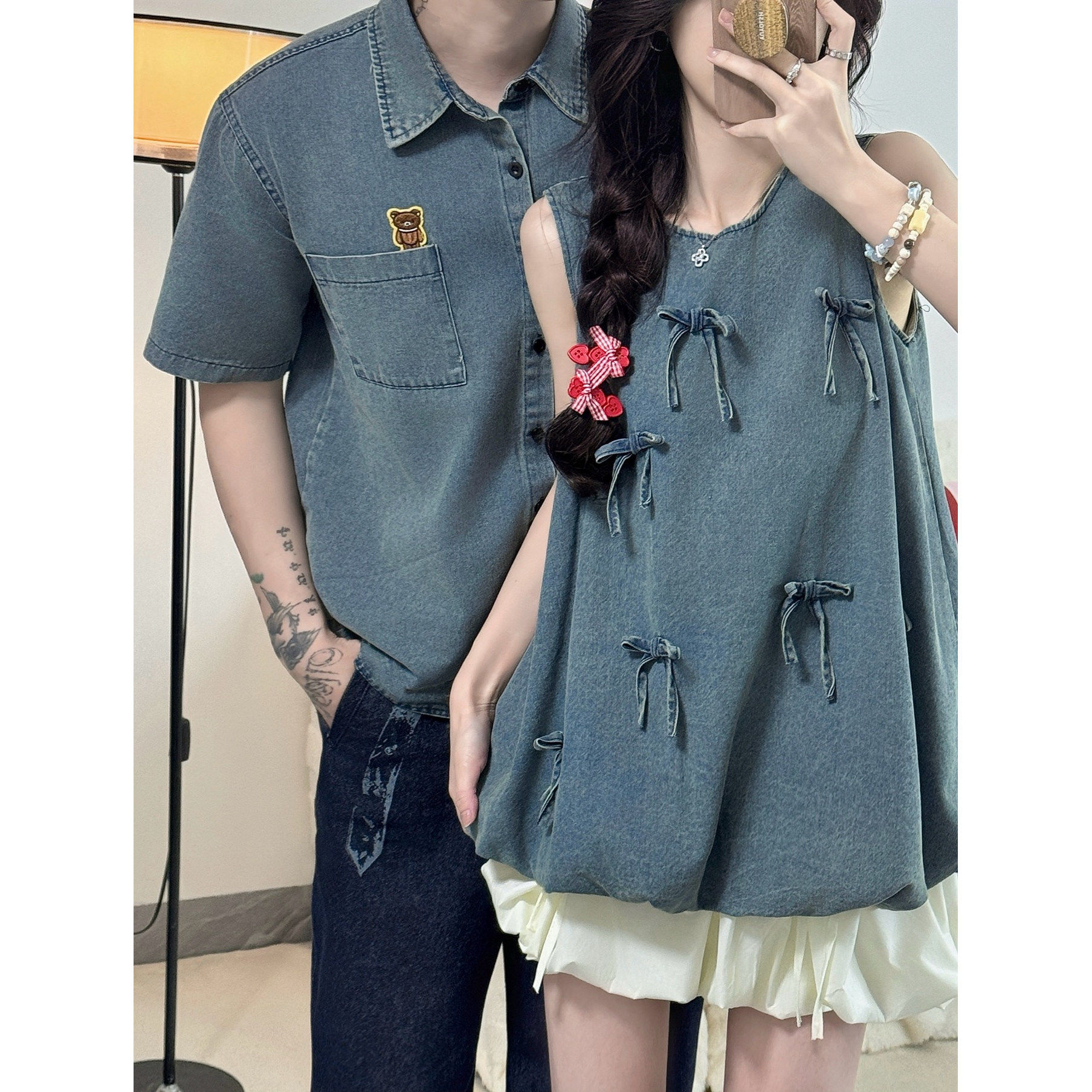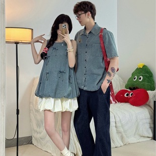 两件套法式 情侣装 衬衫 2025小众设计感牛仔短袖 一衣一裙ins潮 夏季