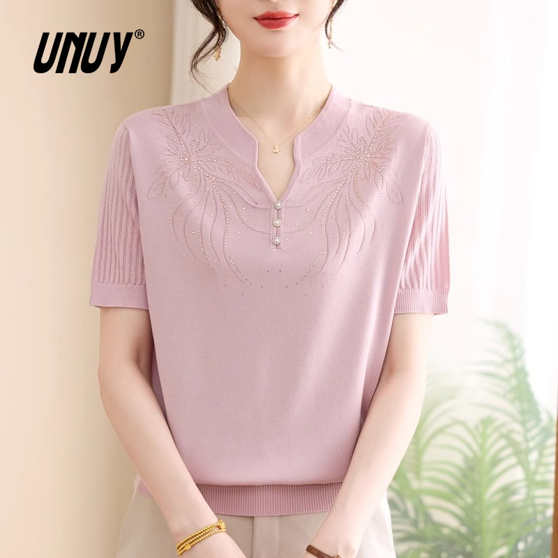 2025新款 T恤针织小衫 洋气短袖 薄款 夏 冰丝上衣中老年女装 妈妈夏装