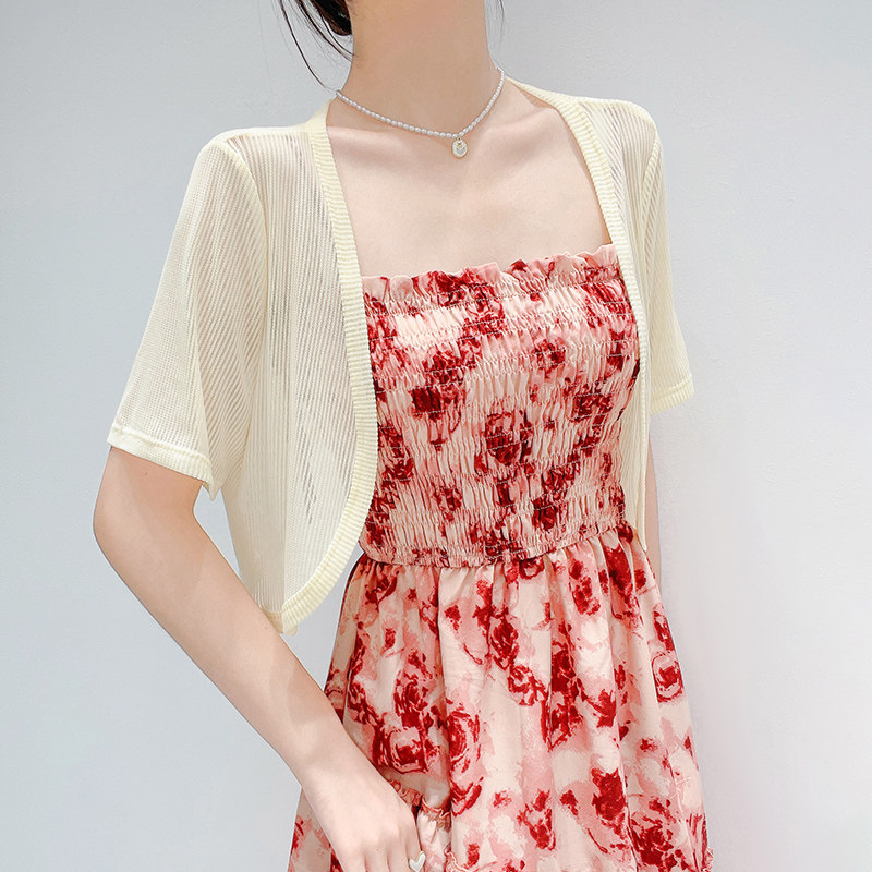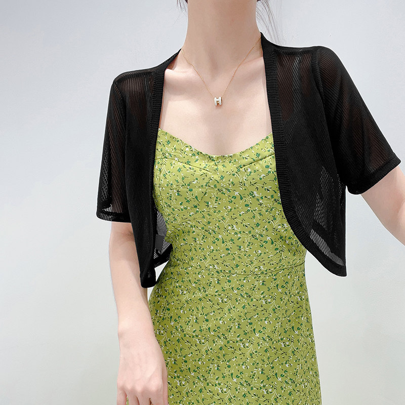 夏短袖 吊带背心女外搭罩衫 小坎肩披肩配长裙 薄款 冰丝防晒网纱开衫